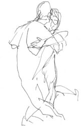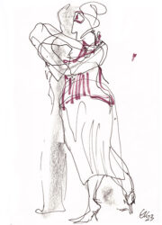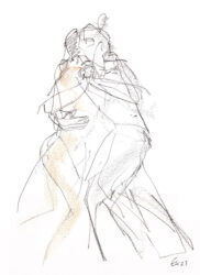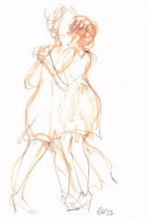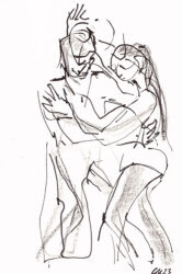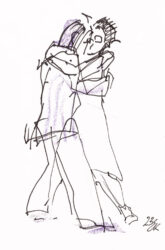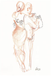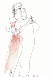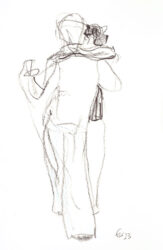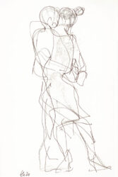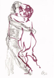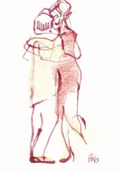 Mit der Liebe zum Tanz und seit vielen Jahren besonders zum argentinischen Tango, hat sich mein künstlerischer Blickwinkel vom menschlichen Körper auf die Bewegung des Körpers im Tanz erweitert. Das Beobachten der im Ausdruck so unterschiedlichen Paare und das eigene Erleben dieses Tanzes weckte die Frage, ob ich nicht auch hier zeichnend die Stimmungen einfangen könnte. Ein schwieriger Sprung war dabei die Übertragung des Arbeitens von der Statik eines einzelnen Modells in Akt und Portrait auf zwei dynamische Personen.
